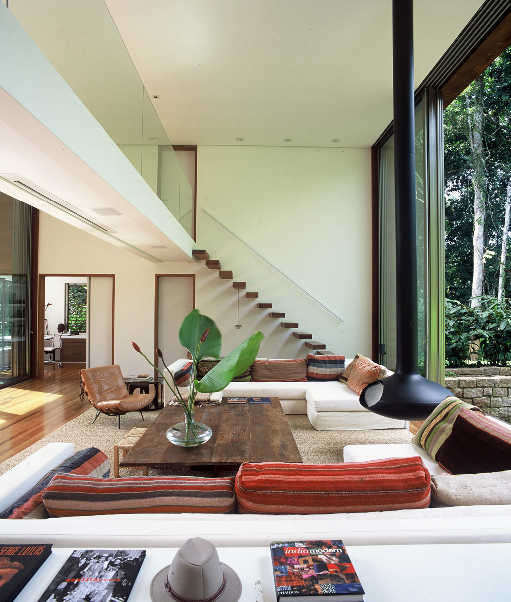 2005-ben építette saját maga számára Arthur Casas brazil építész ezt a házat, ahol a burjánzó természet és a minimál vonalvezetés ellentéte egészíti ki egymást. Évekkel ezelőtt találtam, azóta is a kedvencem. Ellenállhatatlan vágyat érzek, hogy ledőljek olvasni a kanapéra, főzzek valamit a konyhában, vagy írjak egy blogpostot az irodában. Szerelem.