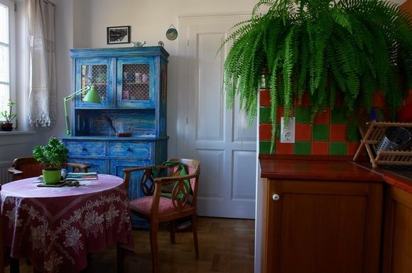 “Szeretem a tárgyakat, képeket, textileket, növényeket magam körül, mindegyikhez személyes kapcsolat és élmény fűz. Színekkel, formákkal vesznek körül, és naponta energiával töltenek. Otthonom élő egységnek érzékelem, mint egy barátságos élőlény, körbevesz és beszélget velem. Nem csak velem, másokkal is: szeretnek ide járni az emberek.