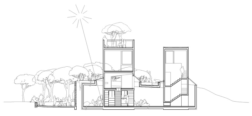 A belső terek számomra nagyon kietlenek és ridegek, a nappali helyiségek a föld alatt vannak. Ez már nekem is túl minimál, úgyhogy nem is teszek ide róla képeket, csak ezt a kettőt. Itt azért megnézhetitek, ha kiváncsiak vagytok rá, milyen a ház belülről.