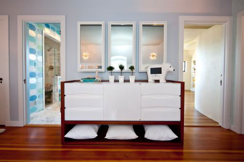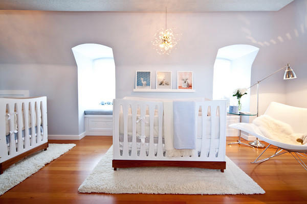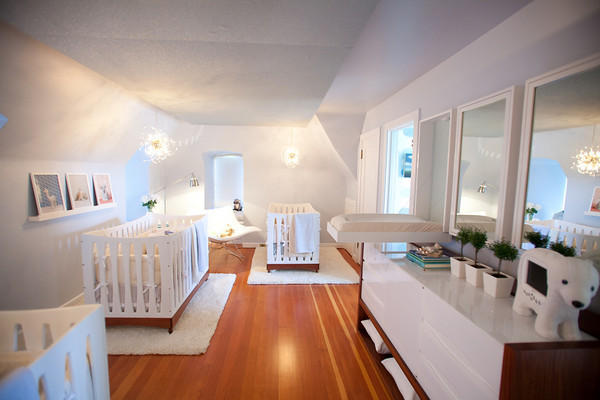Íme egy példa a megoldásra az amerikai MARSH & CLARK DESIGN-tól, akik egy az 1930-as években, francia stílusban épült ház emeleti szobáját alakították át a bébik számára.