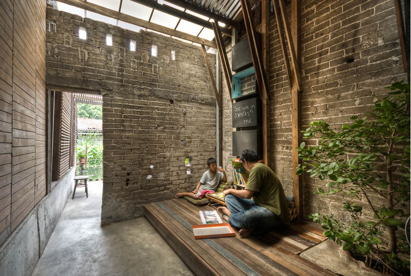A képeken látható könyvtárat Bangkokban hozták létre mindössze 4500 dollárból 2009 tavaszán egy több, mint 100 éves épületben. A város ezen része korábban virágzó kereskedelmi központ volt, azonban egy kilencvenes években történt tűzvész következtében állapota sokat romlott és a kereskedők elhagyták a területet. Mivel a városrészt a rendszeres áradások sem kímélik, a könyvtár kialakításánál az építészek arra is törekedtek, hogy a felszínt akár 50 cm magasan is elöntő víz ne okozzon benne károkat. Ezért emelték meg az olvasásra szolgáló részek szintjét is, hogy a könyvtár árvíz idején is használható maradjon.