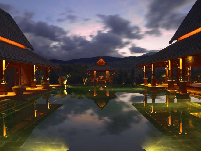 A thaiföldi Chieng Maiban, a Himalája lábánál található a hét pavilonból álló Howie’s HomeStay, ahol potom 800 dollárért bárki megszállhat egy éjszakára, sőt most 14,5 millióért meg is veheti az egészet. Az 5 hálószobás, 8 fürdőszobás rezidenciát egy Thaiföldön élő amerikai építész, Bill Bensley tervezte, akit egyébként az Architectual Digest magazin egymást követő négy évben a világ 100 legjobb építésze között tartott számon. A megrendelők arra kérték Bensleyt, hogy “alkosson meg egy olyan otthont, amelyet büszkén nevezne a sajátjának”.