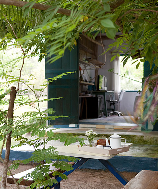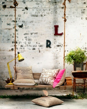 Végezetül pedig a kert, ahol – úgysem fogjátok elhinni -, de az asztalok és székek használt (!) pelenkák és chipseszacskók újrafelhasználásával készültek…