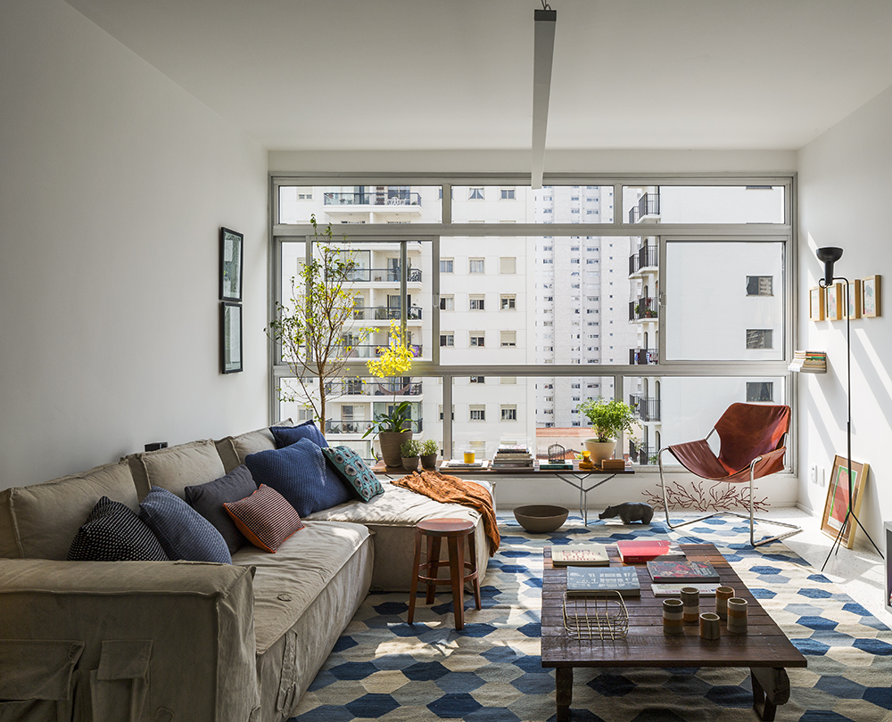 Itt van most megint ez a lakás például, Nathália Favaro 93m2-es otthona Brazília legnagyobb városából, a több, mint 10 millió lakosú (!) São Paulo-ból. Lenyűgöző példa arra, hogyan lehet szuper ötletekkel totálisan elfeledtetni, hogy ilyen közel szemben veled szomszédok laknak. Ennél a lakásnál szerintem ez egyáltalán nem zavaró, annyira jó az egésznek a hangulata, annyira jól sikerül intimitást és személyességet teremtenie, hogy maximálisan nem érdekel, ki lakik szemben és mennyire közel… De nem…? 🙂