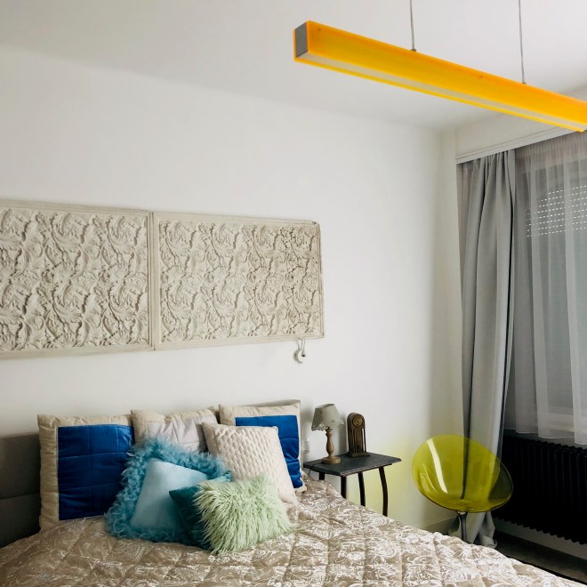 Az egyik ember, akinek a legnagyobb hatása volt arra, hogy én mit gondolok a lakberendezésről, olyasvalaki, akinek tudtommal semmilyen végzettsége nincs e téren, egyszerűen csak zsigerből érzi, hogy mi működik eszméletlen jól. Ő Prokopp Dóra, akivel anno évekig együtt dolgoztam. Azt az irodát is, ahol anno töltöttük a napjainkat, ő rendezte be, és én egyszerűen imádtam ott lenni, annyira jó hangulata volt az egésznek. Mindenki szeretett ott lenni igazából. Dóra nemrég Marko1 ArtBnb néven csinált egy olyan helyet, amit bárki kibérelhet mindenféle tréningek, előadások tartása céljából. Egy csodálatos nagypolgári lakásban van az Olimpia Park mellett, elképesztő kilátással a Dunára és a városra. Egy egy komplett lakás, éjszakára is megszállhat itt az előadó, ha akar, ami külföldiek vagy vidékiek esetén nem utolsó kényelmi szempont. És Dóra nem hazudtolta meg önmagát, egyszerűen zseniális az egész, olyan hangulata, olyan milliője van, amit szerintem nagyon kevesen tudnak produkálni Magyarországon. Sokkal, sokkal több ilyen intelligens ötletekkel és művészi értékkel bíró tér kellene itthon. Igazából maga a lakás is egy műalkotás. Imádom. Tartsatok egyszer itt valami tréninget, ha jót akartok magatoknak.
